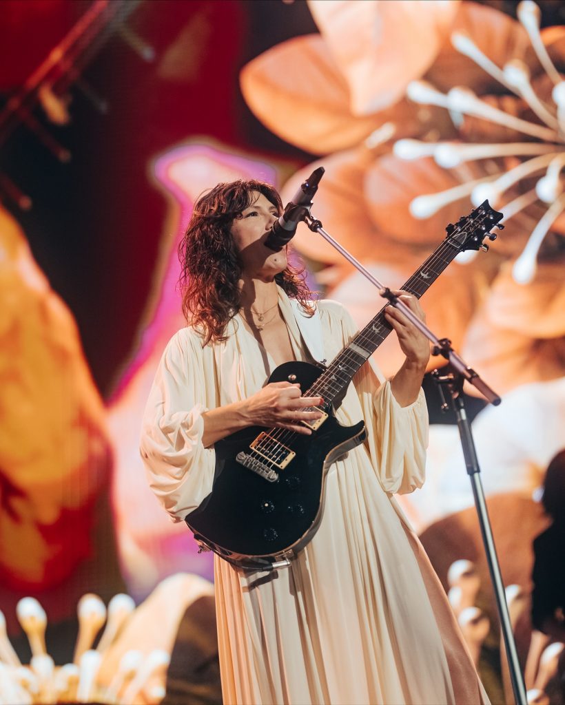 Il live sarà l’occasione per riascoltare brani che hanno segnato il suo percorso, insieme a nuovi arrangiamenti pensati per questi spazi che favoriscono un contatto potente e diretto con il pubblico. Sul palco, un mondo poetico e potente prende forma: grandi fiori bianchi che si aprono come un giardino simbolico, mentre gli imponenti ledwall alle sue spalle alternano immagini della natura, grafiche evocative, e primi piani che restituiscono la forza emotiva di ogni brano. La scenografia riprende quella di San Siro, ma nei palasport acquista un’intimità nuova, più raccolta e cinematografica.